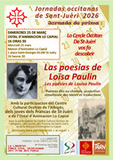 Mercredi 25 mars, à la Maison d'Animation lo Capial, 1 place Saint-Georges à Saint-Juéry, à partir de 16h30, le Cercle Occitan de Saint-Juéry, en partenariat avec le Centre Culturel Occitan de L'Albigeois, les Francas de Saint-Juéry et lo Capial, consacrera son animation poétique de printemps - printemps des poètes - à l'œuvre de la poétesse réalmontaise Louisa Paulin.